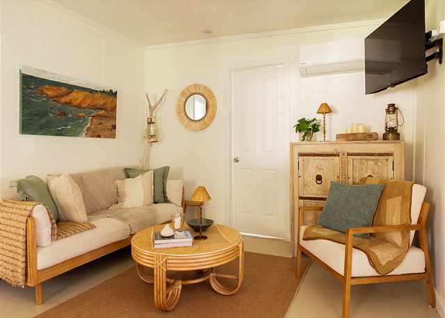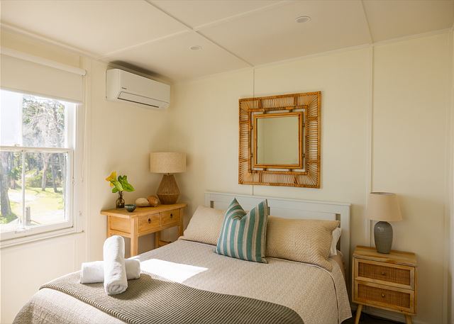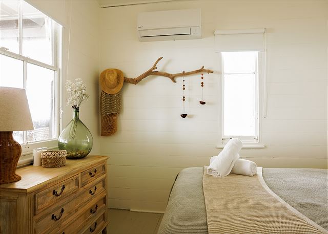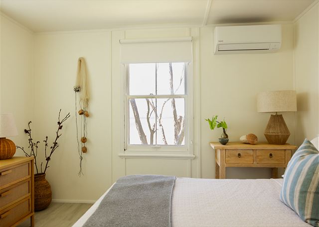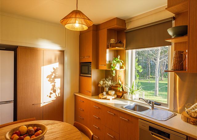 The open-plan kitchen and living area is air-conditioned, light-filled, and equipped for entertaining, with indoor and outdoor fridges (perfect for drinks and bait!), a washer/dryer combo, and everything you need for a comfortable stay.