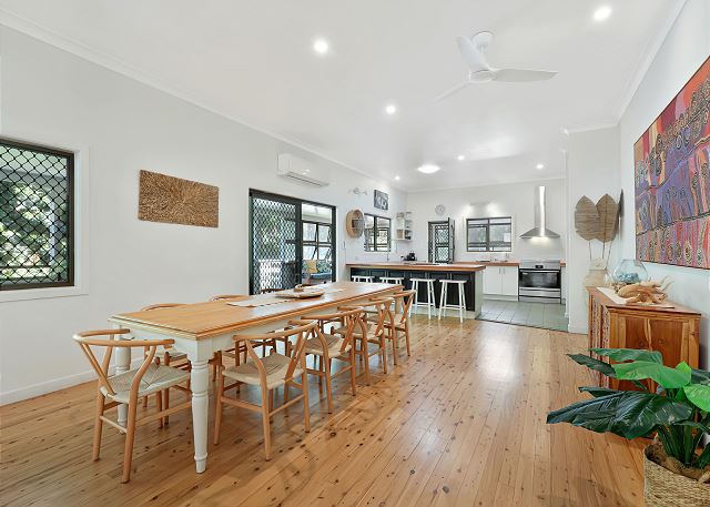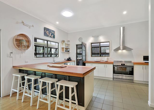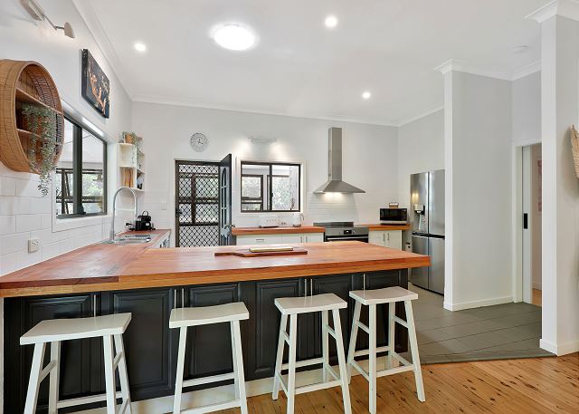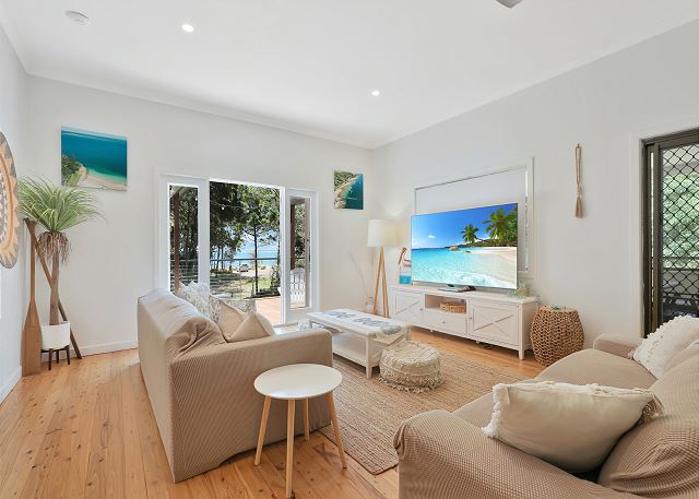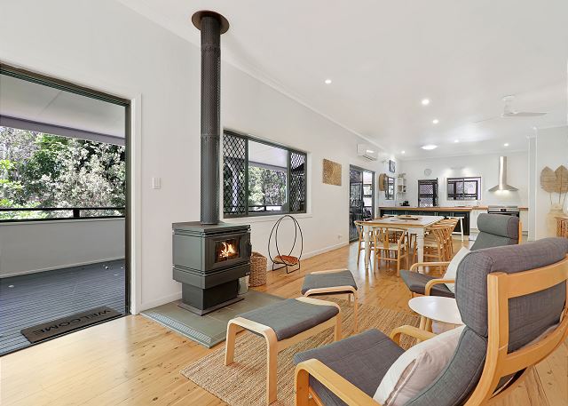 SALTY BEACH is positioned on an acre of land and the established native gardens have been specifically created to encourage koala habitation with a number of our furry friends relaxing in the trees or using the property as a thoroughfare. The deck is the perfect place from which to see koalas up close and personal. The back gate allows access to Toompany Beach which is frequented by our local dolphin population. The outdoor shower allows you to wash away the salt and sand after a long day at the beach before heading inside.