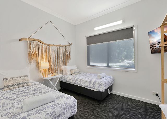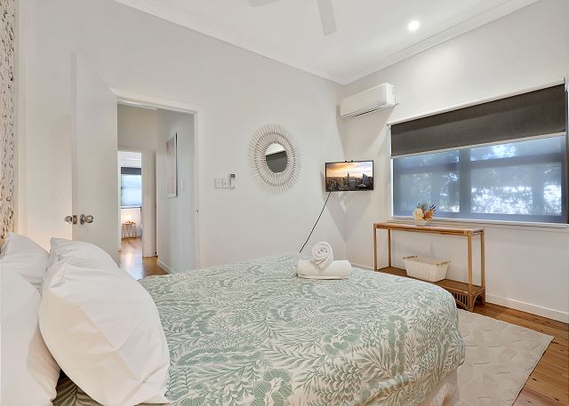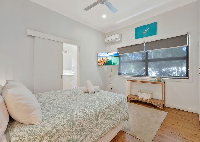 The second bedroom also offers an ensuite and is air-conditioned with a wall mounted smart TV. The other two bedrooms upstairs with queen beds are positioned between the main bathroom and also offer smart TV’s and air-conditioning for year-round comfort.