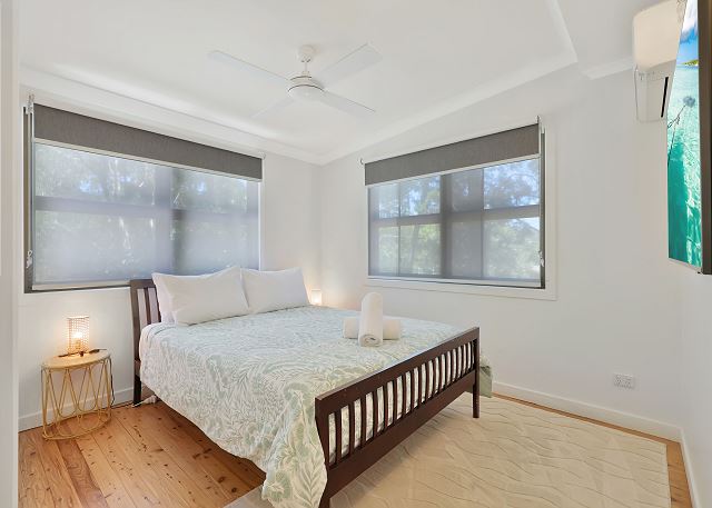 Fresh linen is supplied inclusive of Quilts, sheets, pillowcases, towels, bath mats, hand towels and tea towels. The beds inside the property will be made for you on arrival, all you need to bring are the beach towels!