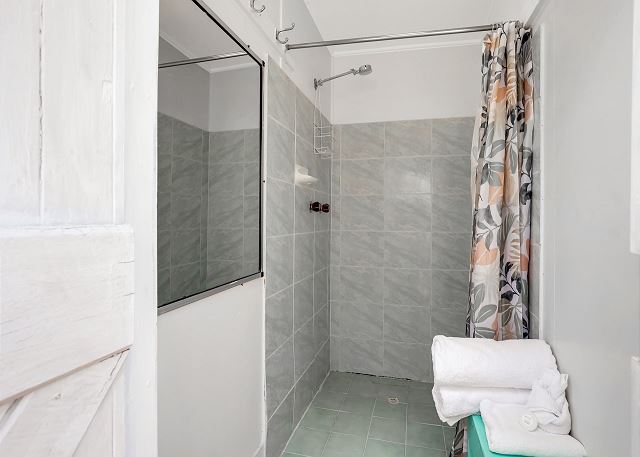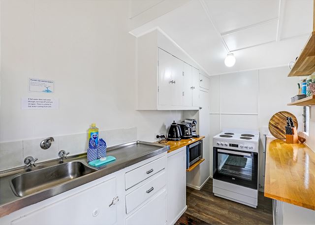 The external bathroom is located at the rear of the property and offers a shower to wash away the salt and sand with a separate toilet. Please note that the bathroom is not attached to the house and is located at the back of the yard, just the way they used to be! A front loader washing machine is located in the external laundry and the BBQ is undercover in the single carport.