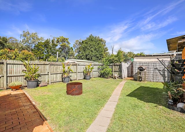 This 2-bedroom property is fully fenced, making it perfect for small children and pets, with ample room down the side of the house for multiple cars, or a car and boat if you want to take advantage of Tally-Ho’s close proximity to the Amity boat ramp. The cosy open plan living, dining and kitchen area are great for spending time with loved ones after a day at the beach or out on the water, with screened louvres allowing the sea breezes to flow throughout the space.