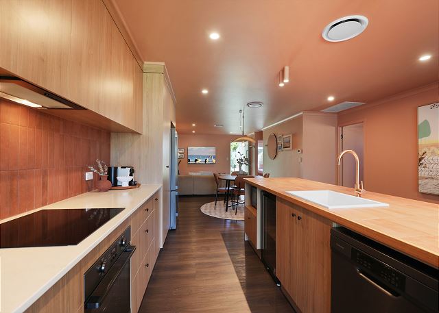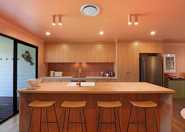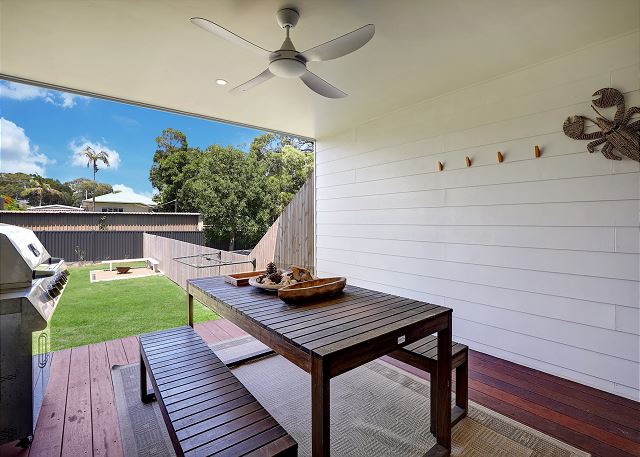 After your beach adventures, rinse off in the outdoor shower, then let kids or pets enjoy the large, fenced backyard—great for play, lounging, or soaking in the sunshine. When the evenings turn cool, gather around the outdoor firepit for a cosy night under the stars.