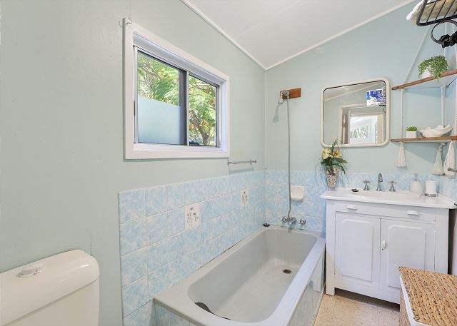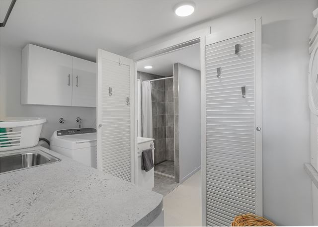 outdoor shower, queen, shower, toilet, tub, Clothes Dryer, Linens Provided, Living Room, Towels Provided, Washing Machine, Wifi, Dishes & Utensils, Dishwasher, Microwave, Refrigerator, Toaster, Dining Table, Near The Ocean